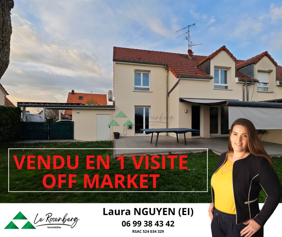 ***VENDU***Située au calme, dans une impasse prisée, cette charmante maison mitoyenne de 112 m² vous séduira par ses volumes, son agencement fonctionnel et ses prestations. Au rez-de-chaussée, vous trouverez une entrée équipée d’armoires murales, un WC avec lave-mains, un séjour lumineux ouvert sur une salle à manger avec accès direct à la terrasse et au jardin, ainsi qu’une cuisine indépendante. L’étage accueille trois belles chambres ainsi qu’une salle de bains complète avec douche, baignoire et WC. Le sous-sol dispose d’une grande pièce polyvalente (bureau, salle de jeux, stockage...). À l’extérieur, vous profitez d’un jardin entièrement clôturé, d’une terrasse équipée d’un store électrique, d’un garage, d’un carport et de deux places de stationnement supplémentaires. La maison est équipée de panneaux photovoltaïques, d’un adoucisseur d’eau et d’une climatisation à l’étage, assurant confort et économies d’énergie. Un bien rare, idéal pour une famille recherchant confort, tranquillité et équipements modernes !