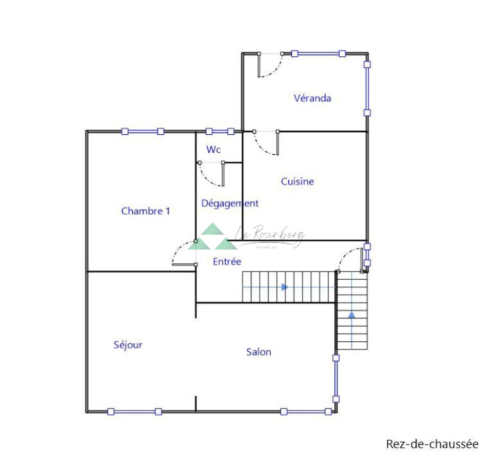 Salon salle à manger, cuisine équipée, véranda avec accès au jardin. Bureau, wc.