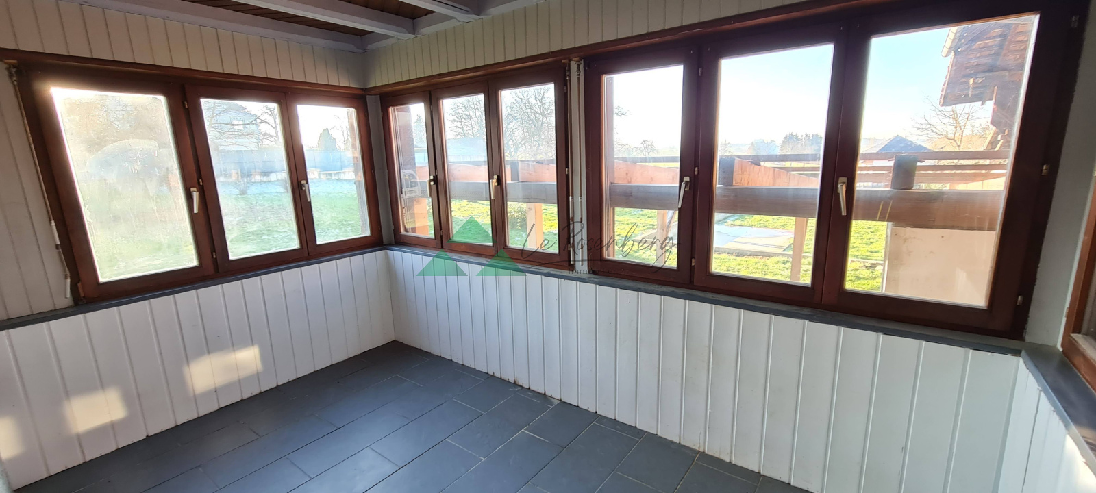 RDC avec entrée, cuisine, véranda, salle de bain une pièce.