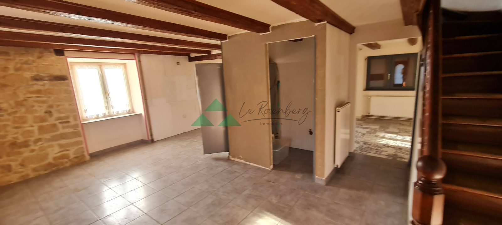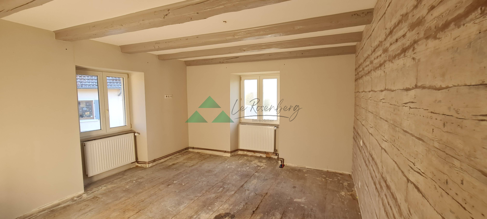 Etage avec 3 pièces, accès grange (dalle béton). Combles avec une pièce et une salle d'eau possible.