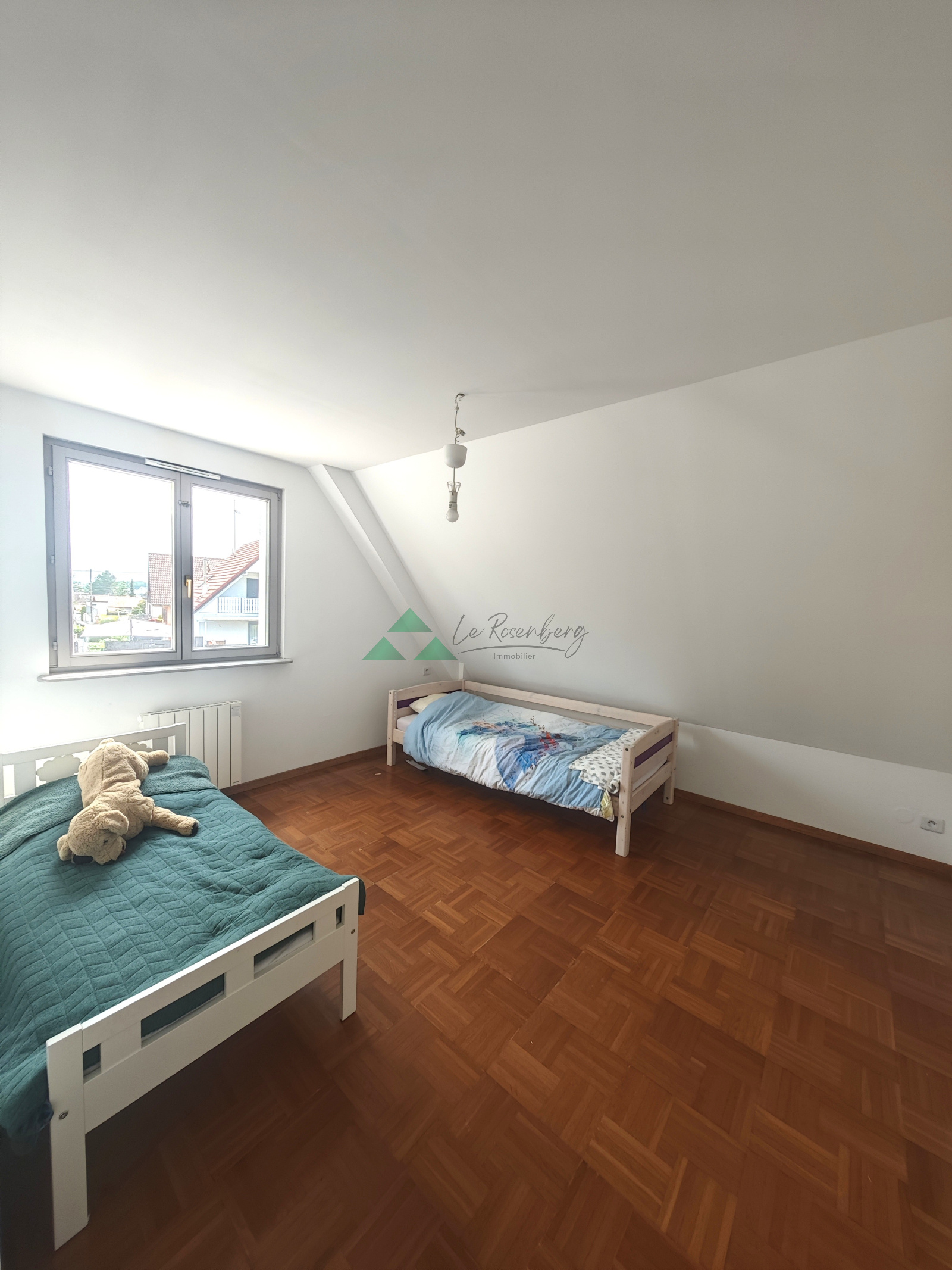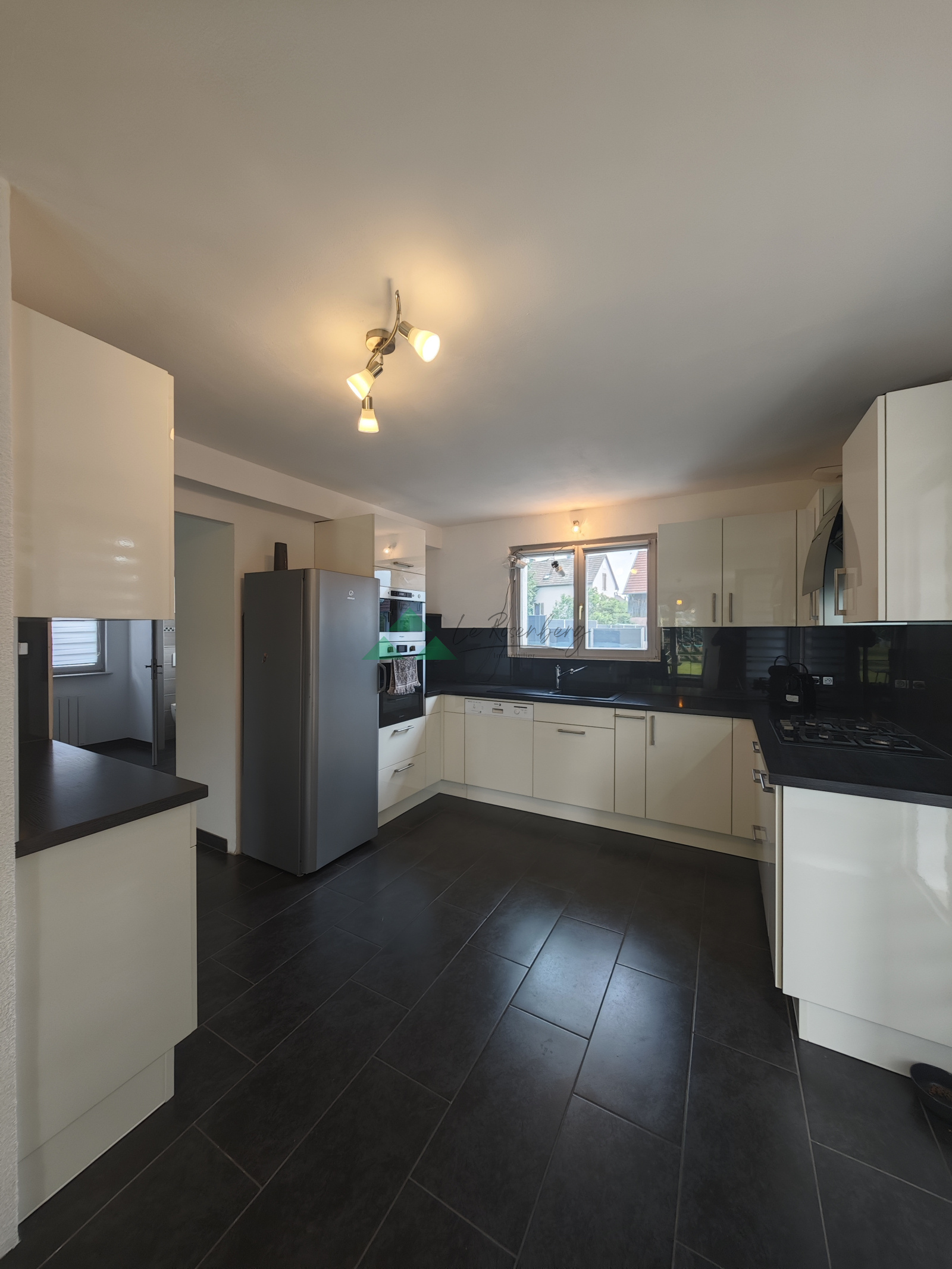 À seulement 8 minutes de la frontière suisse cette charmante maison individuelle de 5 pièces est idéalement située dans un environnement calme et verdoyant. Elle offre une surface habitable de 96,60 m² (112,66 m² au sol) sur un terrain de 8,20 ares entièrement clôturé et arboré. Au rez-de-chaussée vous serez accueilli par une grande entrée avec armoire murale intégrée. La cuisine moderne et équipée s’ouvre partiellement sur un spacieux séjour salle à manger baigné de lumière et agrémenté d’un poêle à bois. Un WC avec lave mains complète ce niveau. À l’étage vous trouverez trois chambres dont deux bénéficient d’un accès direct à un balcon avec vue sur le jardin. Une salle de bain lumineuse propose à la fois une baignoire une douche et un WC. Les combles sont accessibles par un escalier escamotable et offrent un espace de rangement supplémentaire. Le sous-sol complet dispose d’un garage double en enfilade d’un atelier d’une buanderie ainsi que d’une pièce pouvant servir de rangement ou d’espace de loisirs. À l’extérieur deux terrasses permettent de profiter pleinement des différents moments de la journée l’une côté séjour l’autre côté cuisine. Le jardin joliment aménagé et bien entretenu est parfait pour les familles ou les amoureux de la nature. Trois véhicules peuvent être stationnés dans la cour. Maison très bien entretenue au calme avec un grand jardin et un sous-sol spacieux. À découvrir sans tarder.